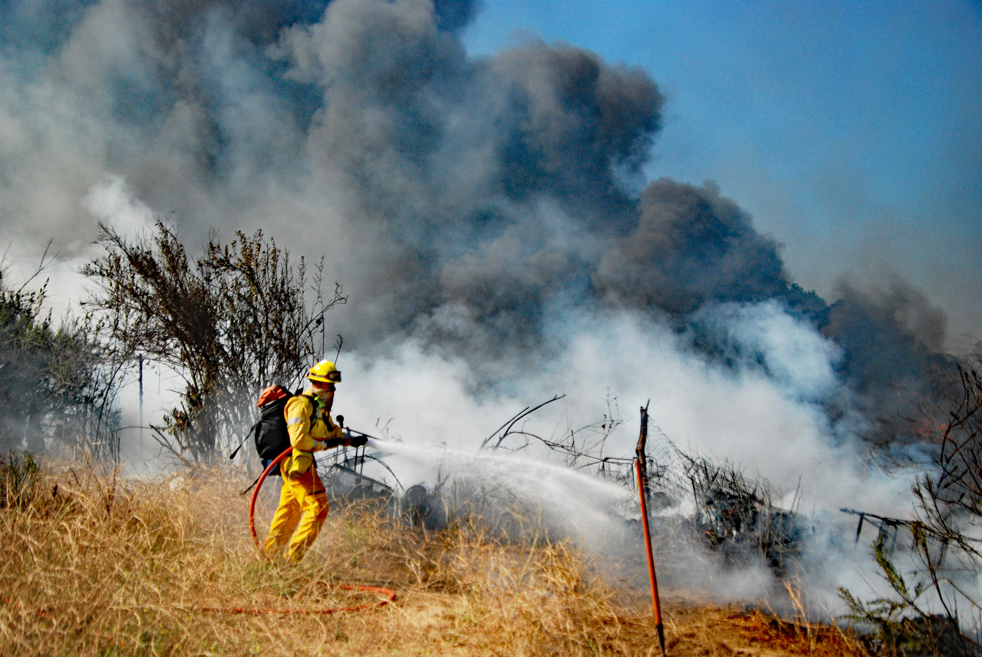 Undaunted, firefighters safely shepherded as many as one hundred homeless persons from the advancing flames, as a series of precise helicopter water drops stopped the forward advance of fire in less than 90 minutes.