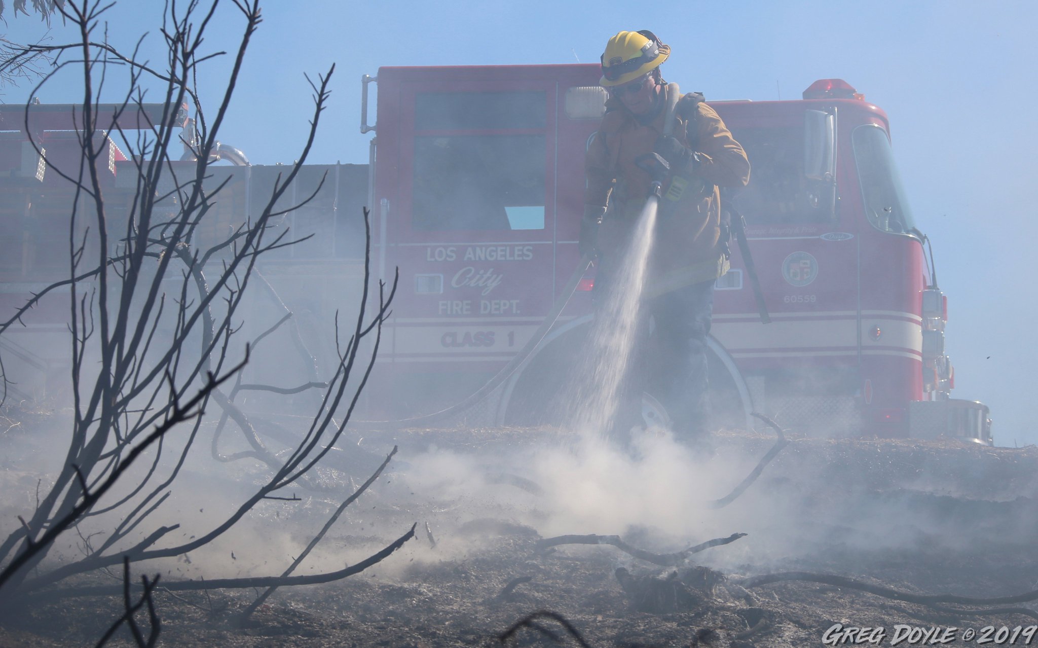 When the first engine arrived and found over 1 acre burning in light to medium brush, they immediately upgraded the incident to a full brush fire response. In addition to over 70 LAFD firefighters, Los Angeles County Fire Department and Angeles National Forest sent a brush response and worked under the command of LAFD Battalion Chief Albert Ward.